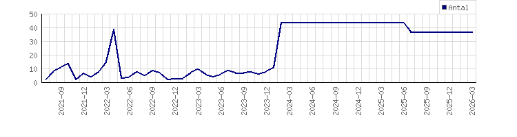 Kurven herunder viser antallet af ejerboliger der var udbudt til salg.